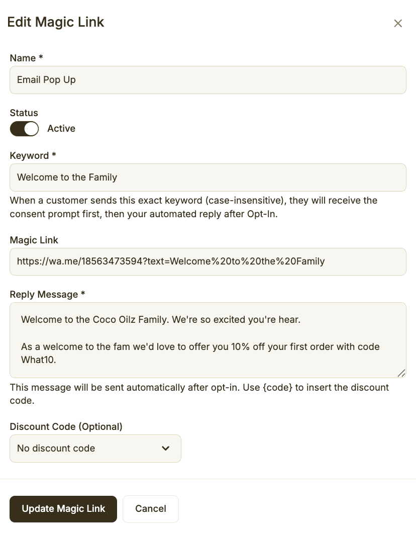 Magic Links allow you to collect WhatsApp opt-ins from any customer touchpoint.
